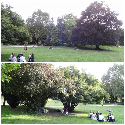 建於1869年第二帝國拿破崙三世時代。佔地十五公頃的蒙蘇里公園是個開放式公園,有好幾個出口,其中一個就是國際學生宿舍 (Cité Universitaire) 旁。也是小巴黎內難得有的大型公共綠地。公園裡有一個大湖外也有不少雕像及樹種。我認為這個公園是個散步景點,值得深入的逛逛並度過一個悠閒的巴黎午後。此行我們主要目的是來聊天,所以一入公園很快就選顆喜歡的樹並拿出桌巾當地舖。