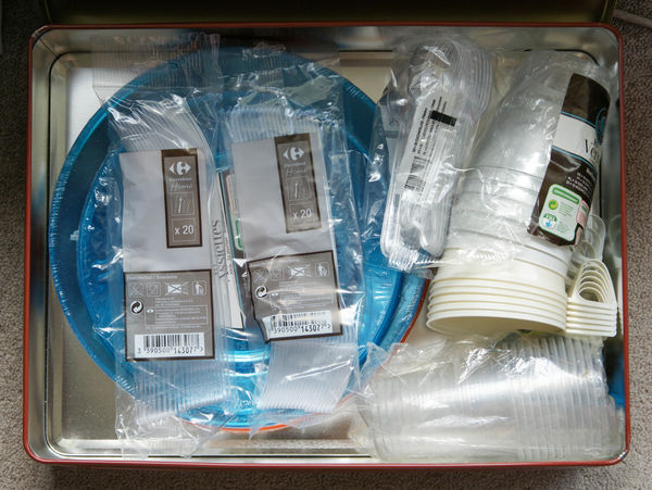 誰之朋友居然忘了餐盤。沒關係我們就隨機應變拿盛裝食物的蓋子當餐盤。