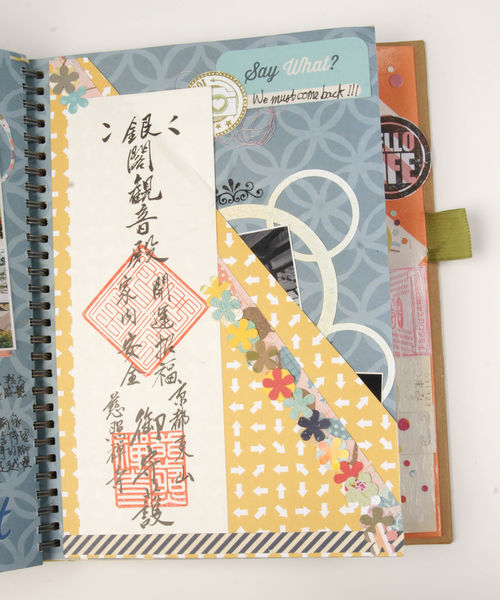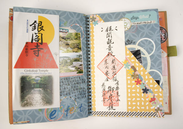 銀閣寺的參觀說明書用紙膠帶黏貼在頁面上保存。