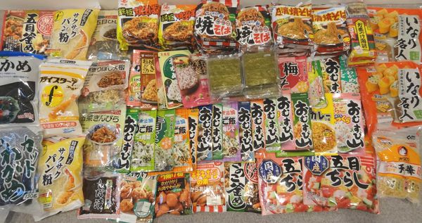 本來拿得更多,每種口味都拿一盒。但後來想想我們好像喜歡吃辣味的,就乖乖地把所有甘甜口味都放回架上了。(偶而還是有理性的一面)此外,也挑了很多可以直接和飯一起煮或配飯吃的配料。畢竟要坐船兩個月,還是得選些能保存的乾食品。泡麵、乾海草、醃菜、炸粉也選了一些。這樣看來,明天晚上我想來吃碗泡麵呢!