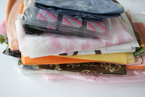 八月家人從日本來訪,行李箱裡都放了我的東西。當家人問我要帶什麼來時,我提起家裡不要的包裝紙、衣服標籤等我都收。因為這個緣起,我得到了一包福袋,裡面充滿了免費驚喜。