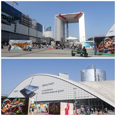 畫作背景是新凱旋門,整體呈現好像透過畫作看新凱旋門 。難道哪個畫作擺放哪是有設計過的。還是我又想太多了…