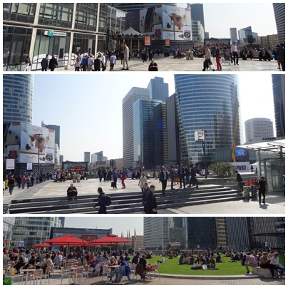 已有一段時間的午休都在電腦前啃三明治。今天決定走出辦公大樓到外頭邊吃三明治邊看人壓馬路談天說笑。上班大樓位於巴黎西邊的拉德芳斯商業區,最著名的景點就是新凱旋門。維基表示截至2009年,拉德芳斯區有約2500間公司在此駐點,大約有十八萬上班族每天在這穿梭。