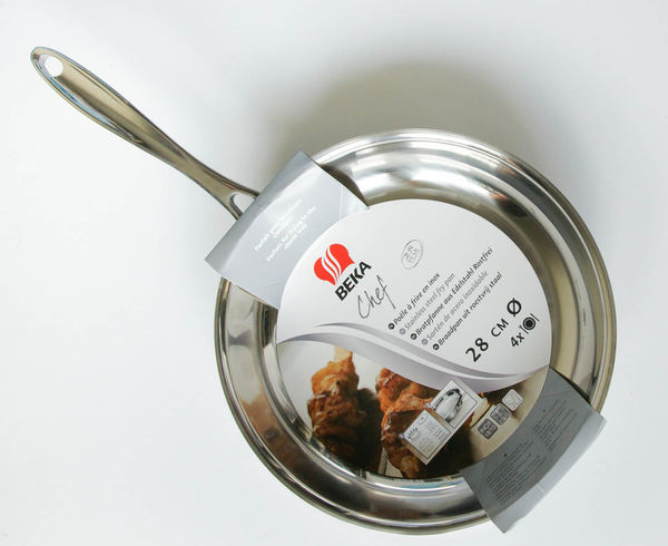 - Beka Chef 28 公分不鏽鋼平底鍋:原價76.9 歐,6 折後 46.14 歐。台灣官網定價 3800 台幣。