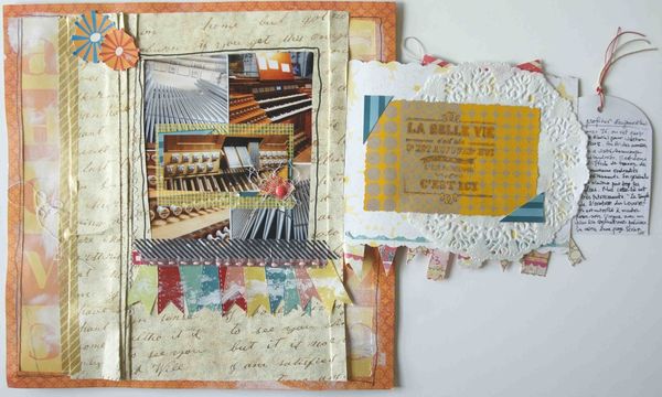 ↑ 這面相編的起源點是消耗我不喜歡的相編紙。沒辦法因為我什麼都留、什麼都捨不得丟。參觀時拍了不少相片, 所以做了內頁以便融入7張照片。標題寫在一張現成圖卡上,看到它當下覺得很有教堂風,馬上用。心得直接記錄在圖卡的背面,整個剛剛好。