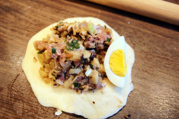 6/ 每個包子配四分之一水煮蛋,不加蛋也可以。原食譜還有配一小條香腸,我沒有加。