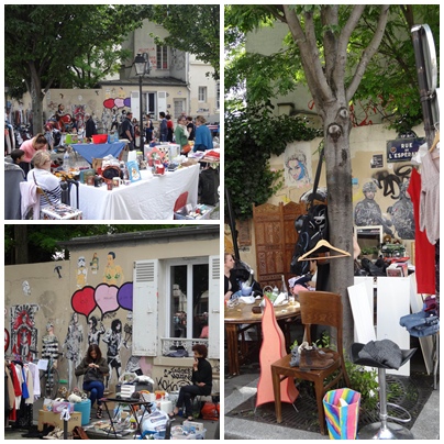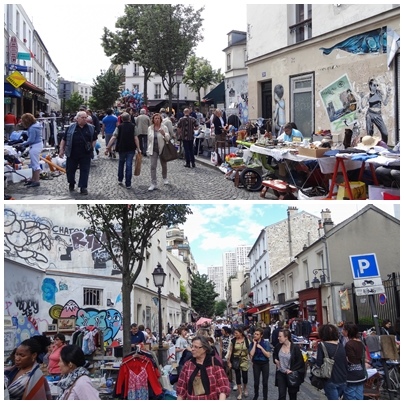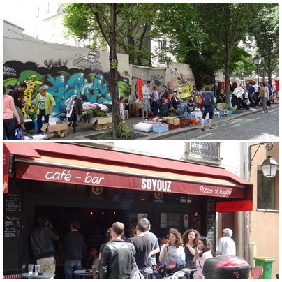 Butte aux Cailles 走跳時不時可看到牆上的塗鴉或貼圖創作。雖然從住家慢慢走到 Buttes aux Cailles 只要十分鐘,但今天我是觀光客,一切都新奇。店家不休息外還特別「擴店」。我很喜歡這種擺攤聊天的方式。有沒有賣出去無所謂 ,和朋友歡樂聊天較實在!
