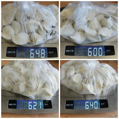 ▲目前為止買了兩次,有四袋樣品。平均六百到六百五十克。