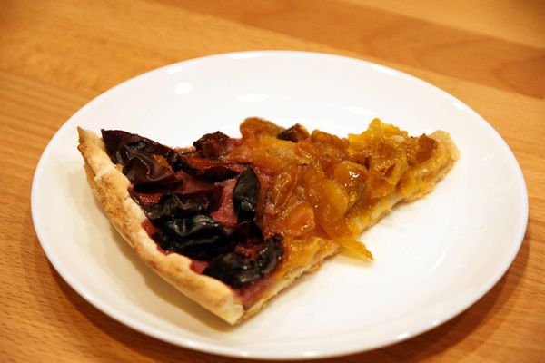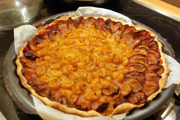 還有剩下的大馬士李,但數量沒有多到能再做一個塔。決定和同樣產於法國東部落林區的黃香李 (Mirabelle) 來個混合塔吧。
