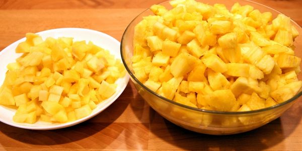 切塊鳳梨心也有425克,在巴黎鳳梨很高貴,所以不要浪費。