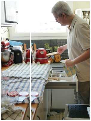 媽媽的食材齊全,但我沒麥芽和香草莢就記住著色部分。動工前也不忘從儲藏室挖出好多個空果醬罐,並將它們全部送進洗碗機洗「三溫暖」。