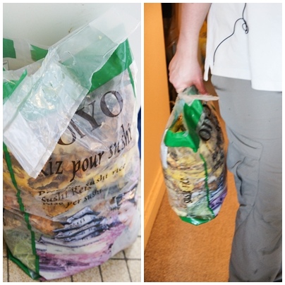 我吃鳳梨,鳳梨皮就有勞家裡的胖壯男出面處理一下。把十公斤的空米袋裝的沉甸甸直送垃圾堆。