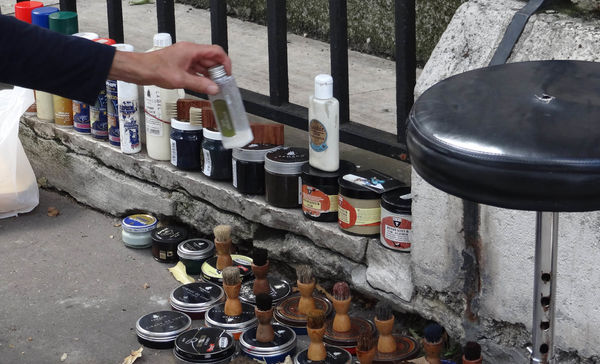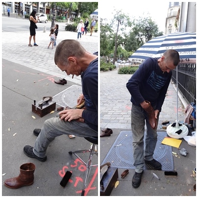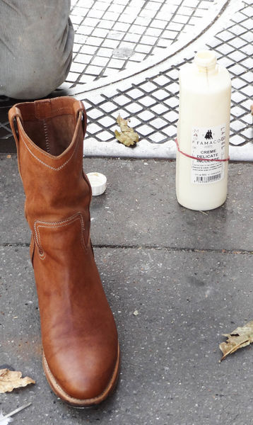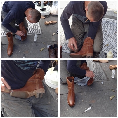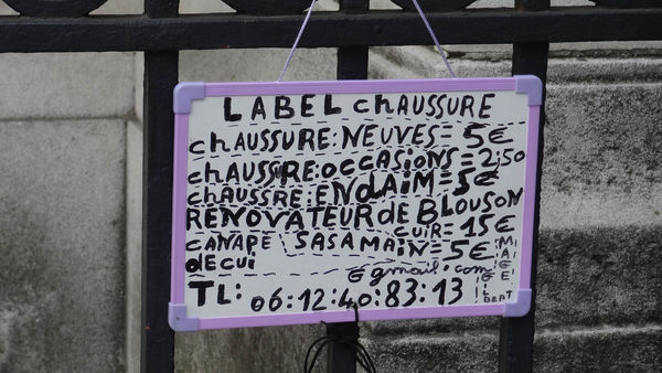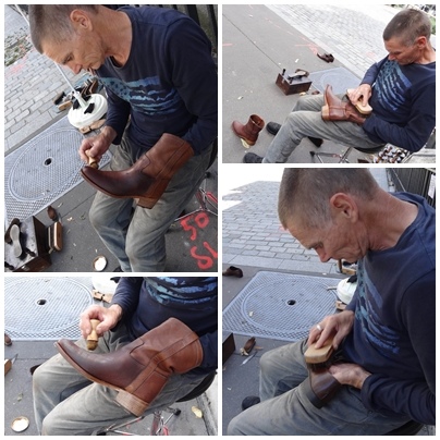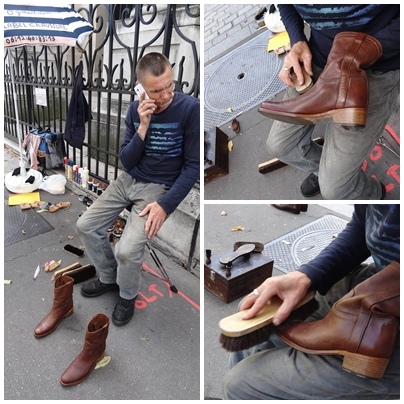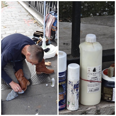 好幾次從13區走到5區的散步路上會看到一個鞋子保養路邊攤。一開始只是很好奇,怎麼會在這個人潮看似不多的地方擺攤。沒想到有天我還真的需要保養靴子,直接想到這個常看到的小攤子 Label Chaussure。