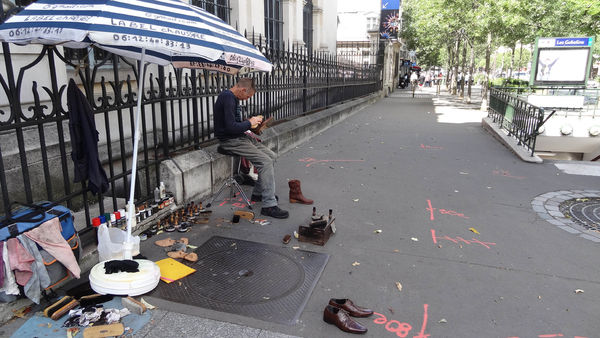 擦鞋攤位於地鐵7號線Les Gobelins出口