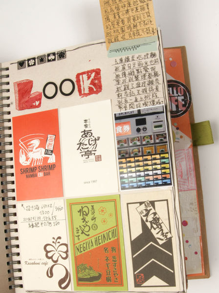 除了名片外,也貼了兩張大小和名片一樣,在餃子王將拍的照片,以便紀錄誤闖吸菸區的不好回憶。簡短的紀錄在相片的背面,非愉快經驗藏起來也無所謂。多虧有名片當背景,這頁看得出來完成速度非常快。