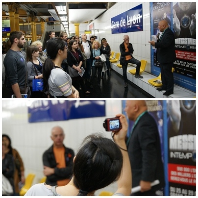 從解說員的名字和一口流利的法文及他提到他讀高中的回憶,我猜他是日裔法國人。當天「很不幸地」有M6電視台的記者跟著我們一起參訪,讓我見識到記者的死纏爛打功力。這也是這次參觀的一顆老鼠屎(稍後會解釋)。導覽時間約兩小時。導覽伯伯拿著他的通行卡帶我們暢行無阻巴黎地鐵。真想要擁有一張同樣的萬能卡,搭地鐵都免費!(笑)